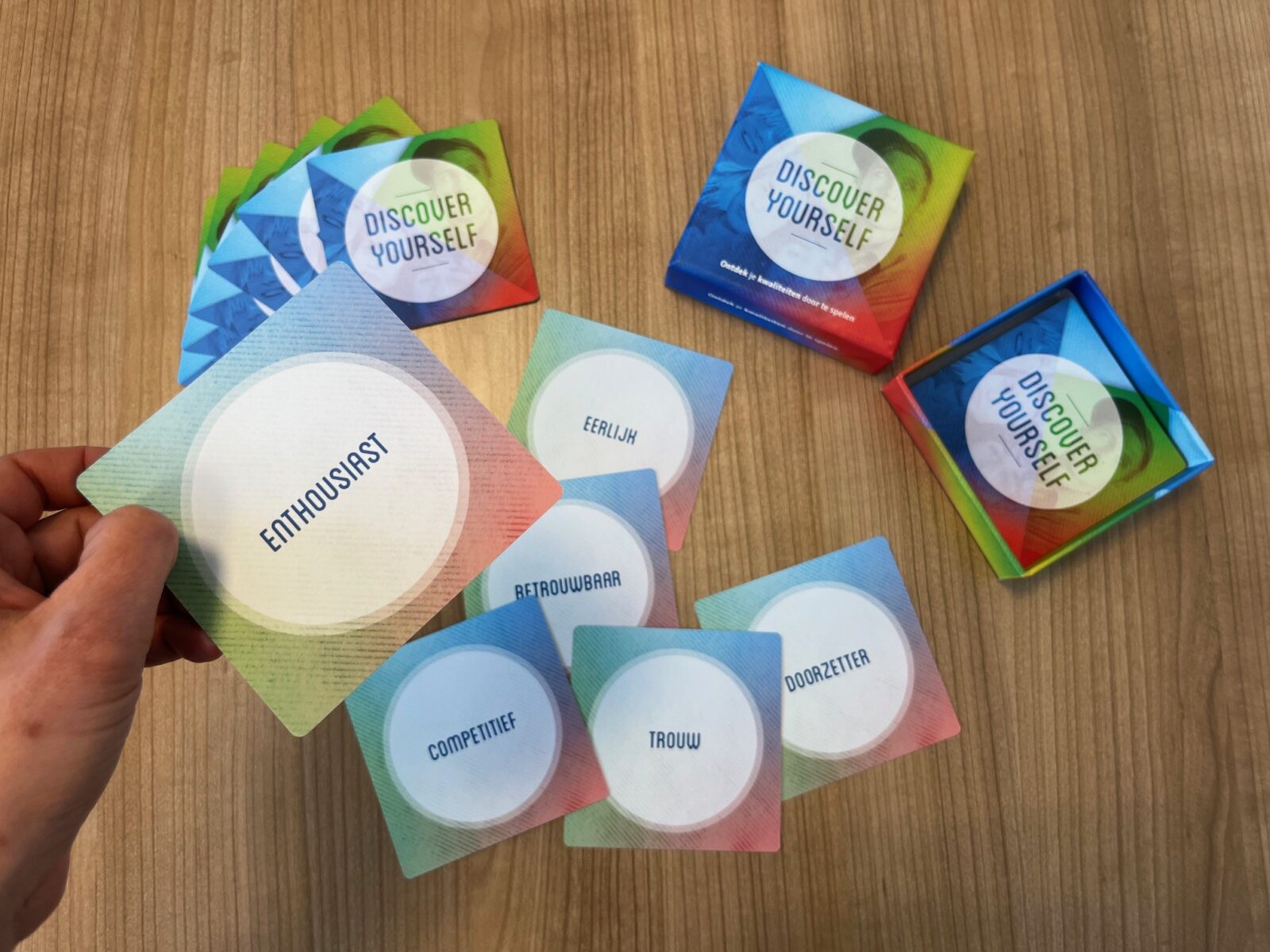 Met Discover Yourself leer je jezelf en anderen spelenderwijs beter kennen. Je kunt het als kaartspel spelen of direct online, klik hier.